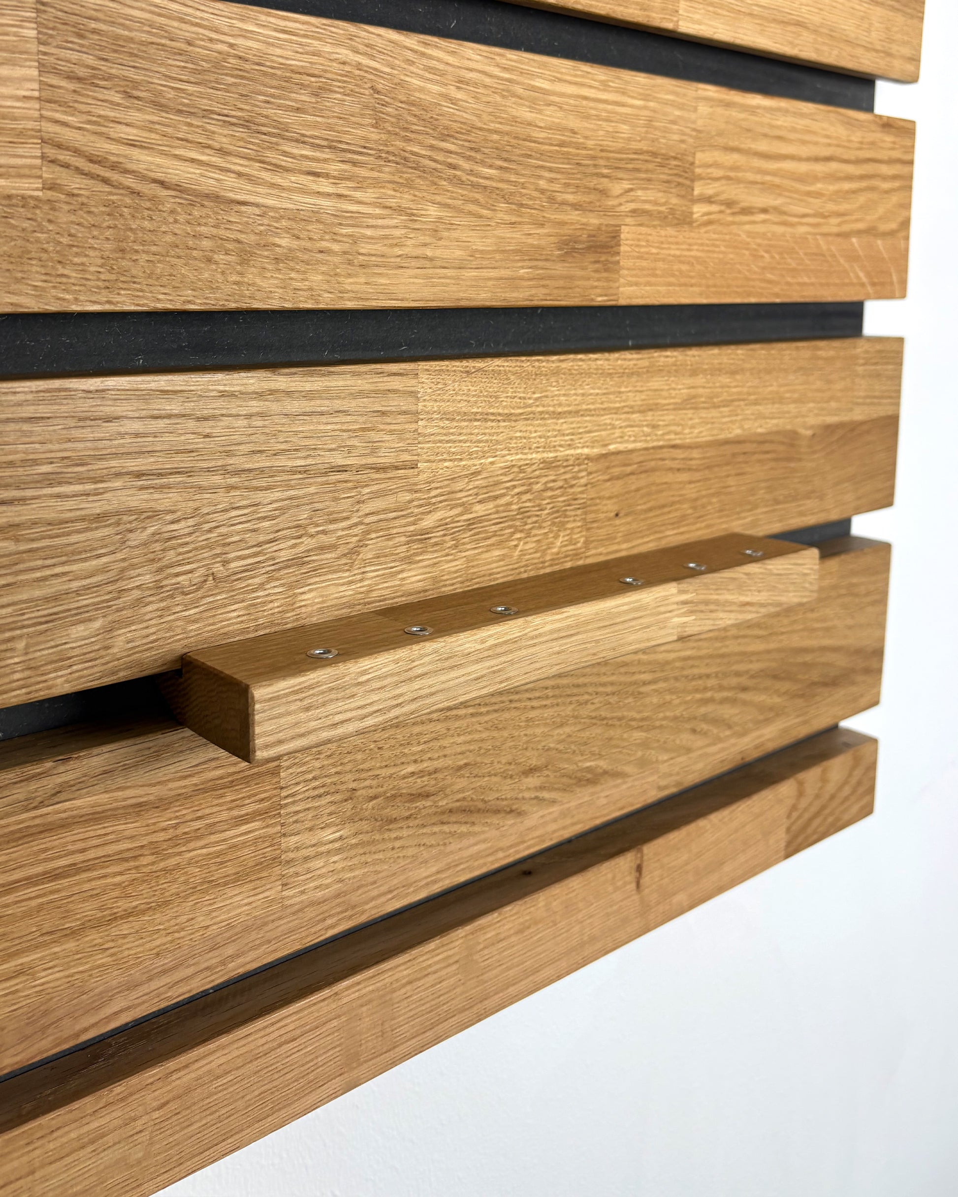 Gib deinem dart-organizer ein Upgrade mit dem Modul "Dartpfeilhalter B2" aus massivem Eichenholz. Der ideale Ort um deine Darts zu verstauen und perfekt in Szene zu setzen.